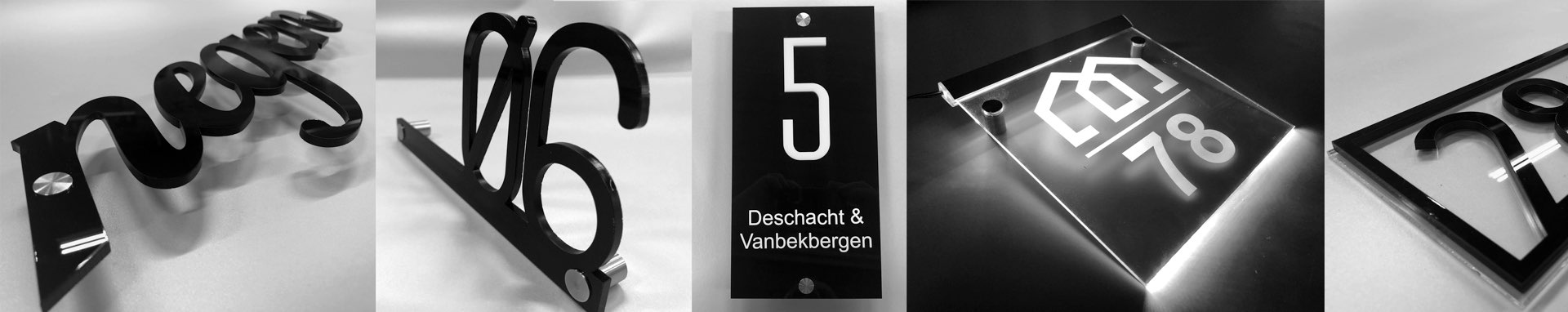 3D huisnummers en naamborden zijn laser gesneden of lasergegraveerd uit plexiglas